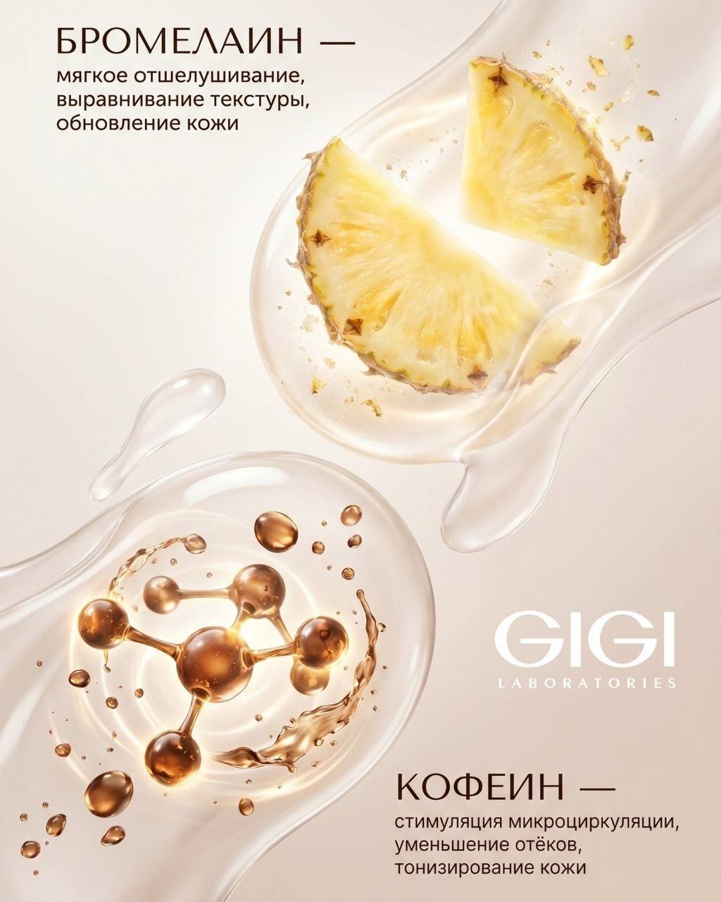 Spirulina, rich in proteins, vitamins, and minerals, neutralizes free radicals, protects against external factors, slows aging, and hydrates the skin. Bromelain, an enzyme from pineapple, promotes skin renewal by removing dead cells and has anti-inflammatory properties. Q10 protects against UV rays, improves skin tone, stimulates collagen production, making the skin firmer and fresher. DMAE prevents sagging by strengthening skin structure and increasing elasticity. Poly-γ-glutamic acid provides deep hydration and enhances skin softness. Caffeine activates circulation, strengthens capillaries, stimulates lymphatic drainage and lipolysis processes, improving the skin’s overall appearance.